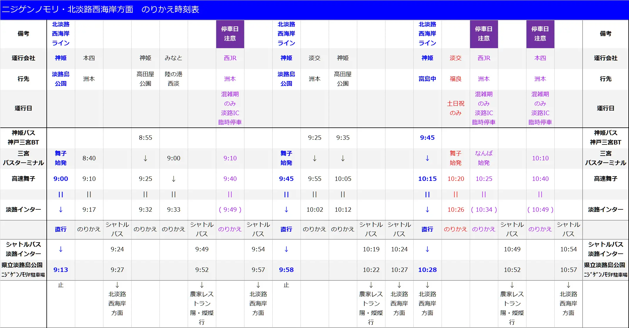 For Nijigennomori and Awaji west coast area