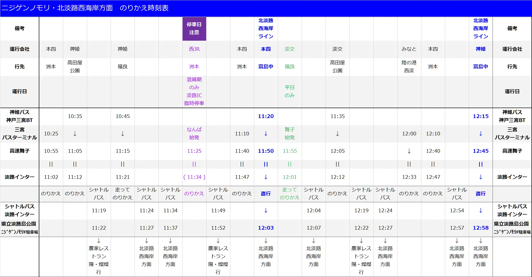 淡路IC のりかえ時刻表